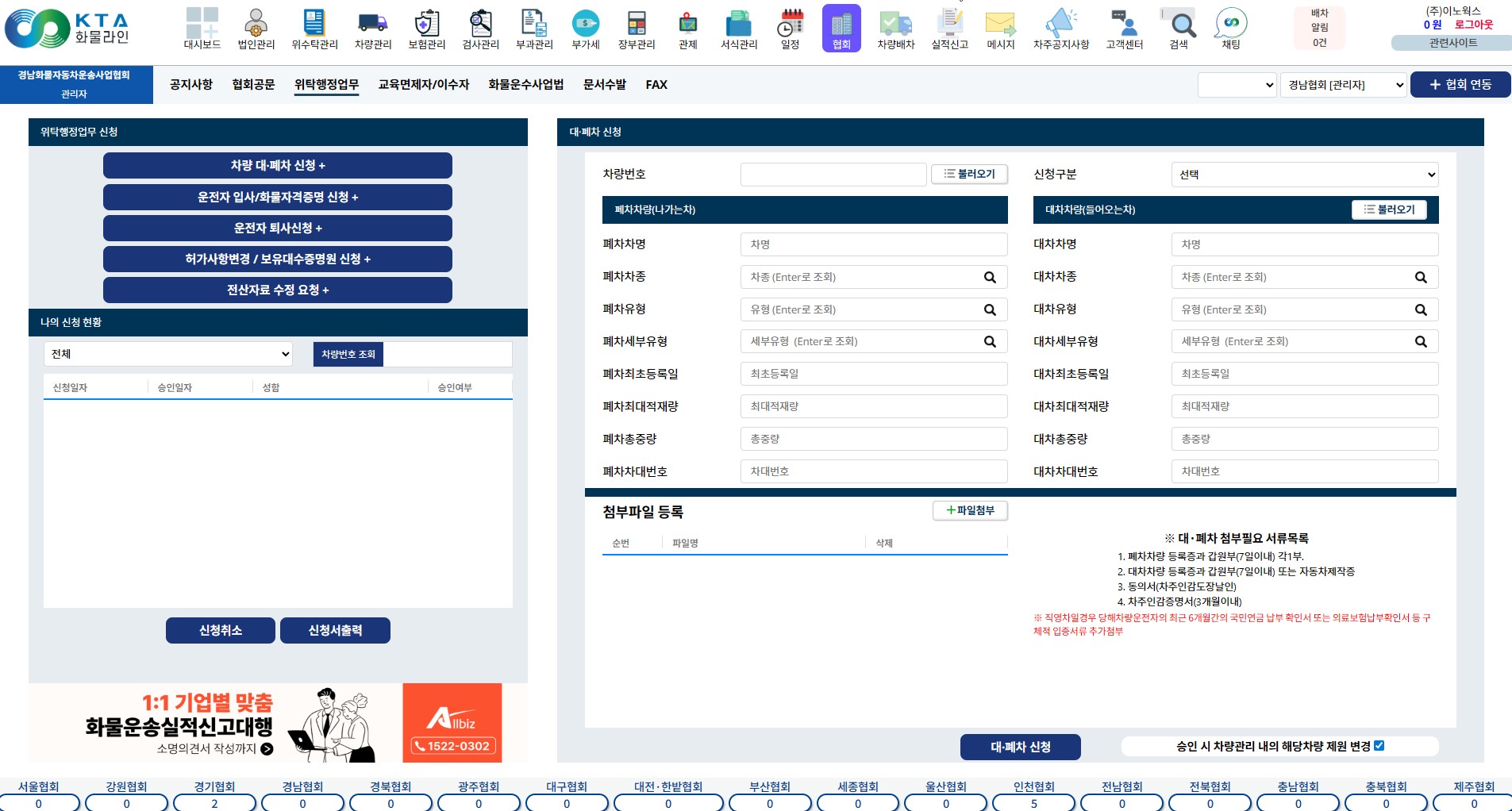 3.운송주선사: KTA화물라인 프로그램을 통하여 화물오더를 차주에게 배차하는 업체를 말한다.